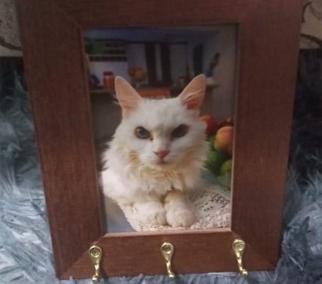 Porta Chaves 3 ganchos madeira envernizada foto 10x15cm.